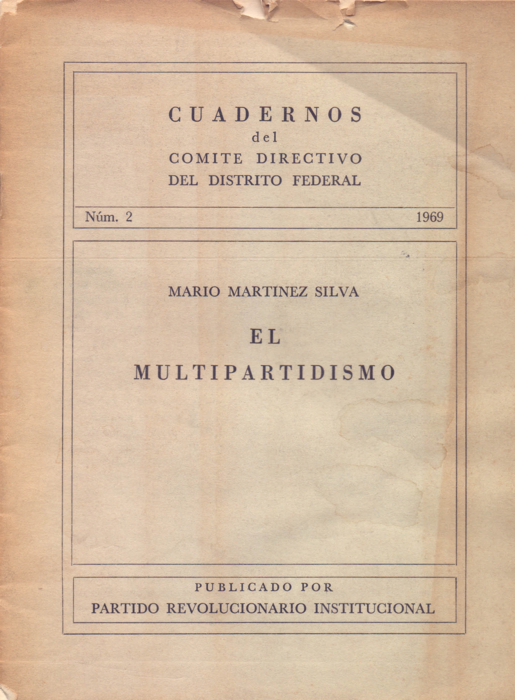 MARIO MARTINEZ SILVA. EL MULTIPARTIDISMO. CUADERNOS del COMITE DIRECTIVO DEL DISTRITO FEDERAL. Núm. 2. 1969. PUBLICADO POR PARTIDO REVOLUCIONARIO INSTITUCIONAL