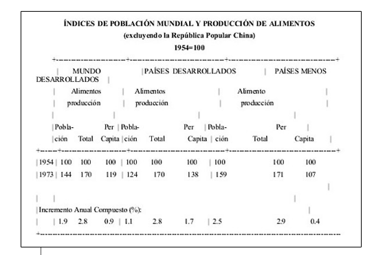Aunque el Producto Bruto Interno (PIB) se incrementó a un promedio anual de 5% en los LDC’s en la última década, el incremento poblacional de 2.5% redujo el promedio del ingreso anual “per capita” a sólo 2.5%. En muchas áreas muy pobladas esta tasa fue de 2% o menor. En los LDCs más afectados por la crisis del petróleo, con una población de 800 millones, el incremento del PIB se puede reducir a menos del 1% “per capita” anual por el resto de la década de los 70’. Para la mitad más pobre de estas naciones, con un promedio de ingresos menores a $100, la perspectiva es 0 crecimiento o regresión durante este período.