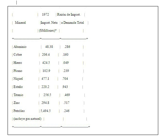 - En el original: “The location of known reserves of higher-grade ores of most minerals favors increasing dependence of all in dustrialized regions on imports from less developed countries”. N. del R.